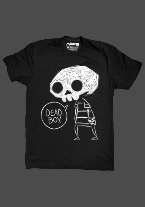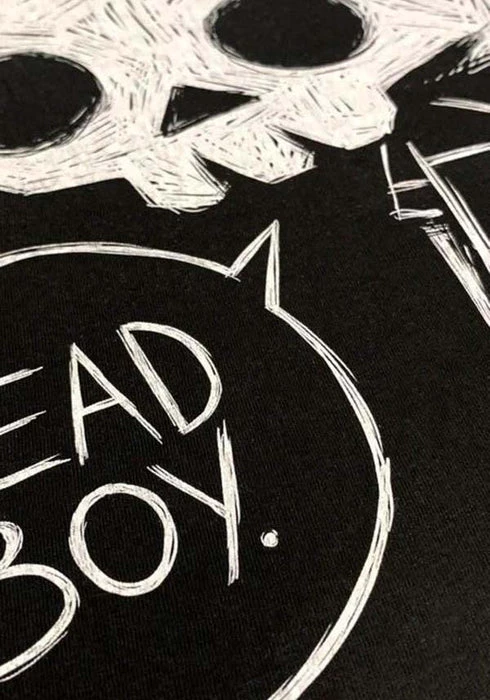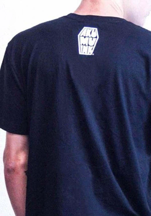 AΒ scribbled skullΒ features on this black shirt with the coffin logo on the back near the neck like a signature on every shirt.