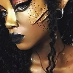 Not only do they hand make and inspect each set of ears, they try to use the highest quality materials they can find. Often on the road they are told Aradani ears last for years of use, with some people coming back with the same ears after 6-7 years of wearing them! Using RMG make-ups (rubber mask grease paint), you are able to paint the ears to match a variety of skin tones. You can attach these ears with spirit gum or liquid latex (personally we recommend spirit gum). The seam lines can be blended with latex or hidden with the use of an ear cuff as shown in the picture.