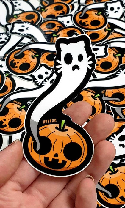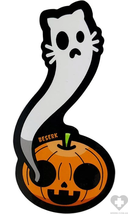 This purrfectย sticker features an adorably spookyย ghost Kitty and a mini Jack O’Lantern!