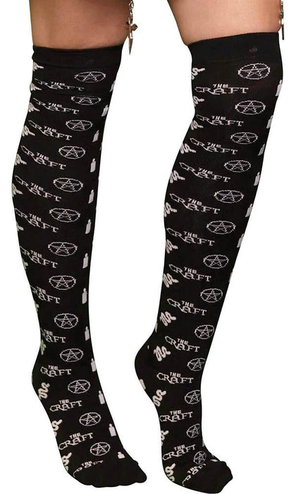 “Oh relax, it’s only magic!” Kick back and relax in these super comfy Knee high The Craft X Beserk socks featuring white symbols contrasted on black. Pair these babies with an iconic The Craft X Beserk t-shirt, black pleated skirt, Knee highs and some bad-ass combat boots to complete your full witch outfit!