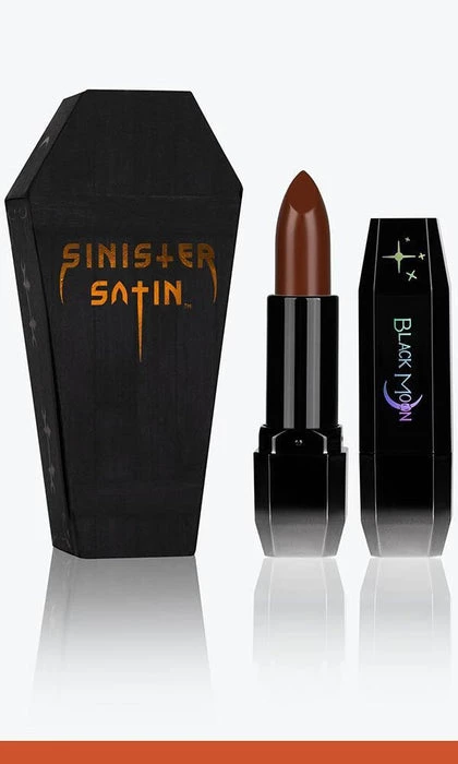 Like liquid lipsticks, the Sinister Satin bullet lipstick formula is like no other. Each shade is inspired by horror cult classics with 9 assorted shades suited for all skin tones in the darkly, patent-pending coffin packaging and luxurious bullet component. Sinister Satin is sure to become a horrorific staple in your collection.