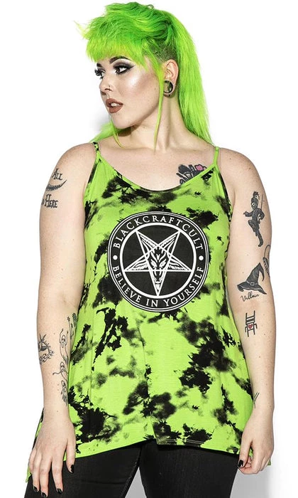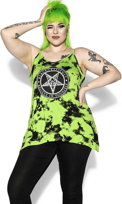 Create your own future! The Believe In Yourself Green Lightning DyeΒ Tank TopΒ by Blackcraft isΒ ultra soft and featuresΒ one of Blackcraft’s many logos – Baphomet in contrasting white print, on a green and black tie-dyeΒ background. BlackcraftΒ topsΒ are super comfortable, and true to size.Β