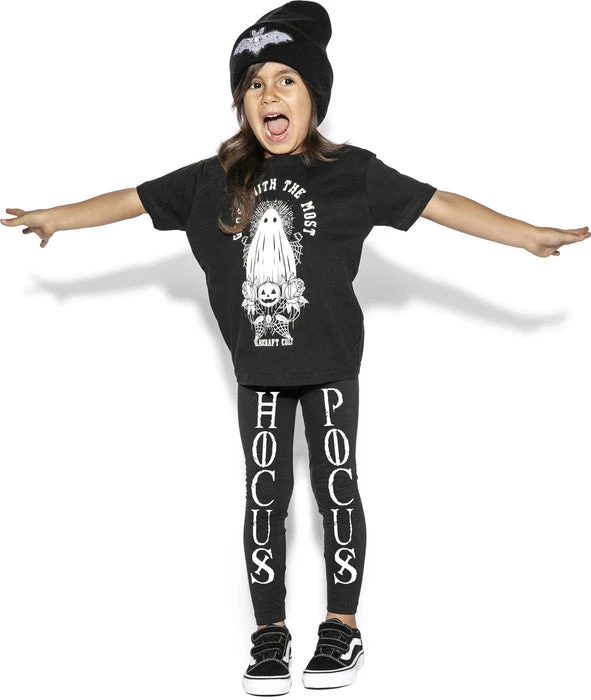 These adorable Children’s Leggingsย featureย Hocus Pocus printed textย and are perfect for your little one or as a gift!ย