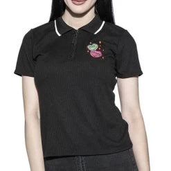This cute polo shirt will make the perfect addition to your wardrobe. Pair it with a pair of black jeans and boots for the perfect casual outfit.