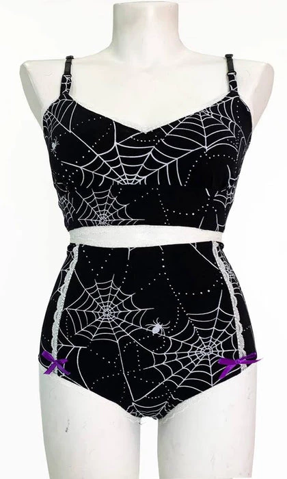 Slip into some spooky time with this gorgeous, spiderweb printed, intimate set. This dark & dreamy twinset, will have you feeling wickedly, wonderful from the underwear – out! It’s great as intimate wear or snuggle it into bed for the best dreamingย ever.