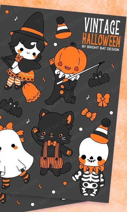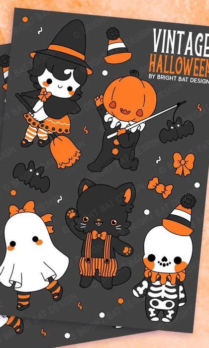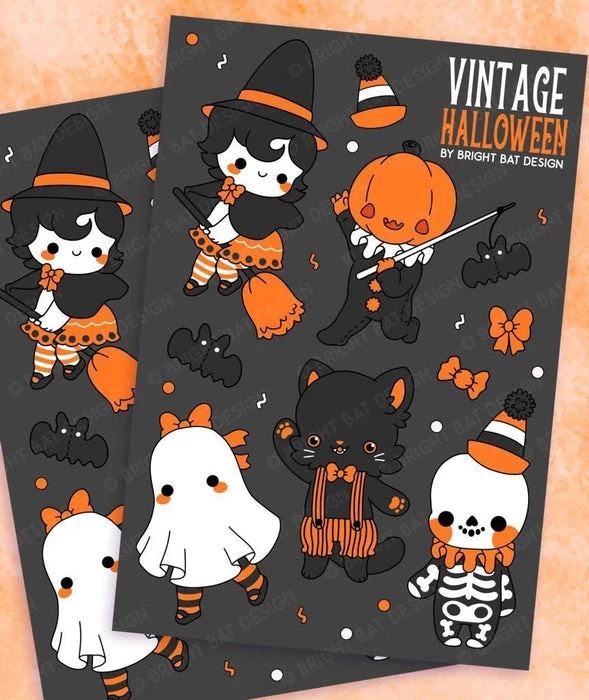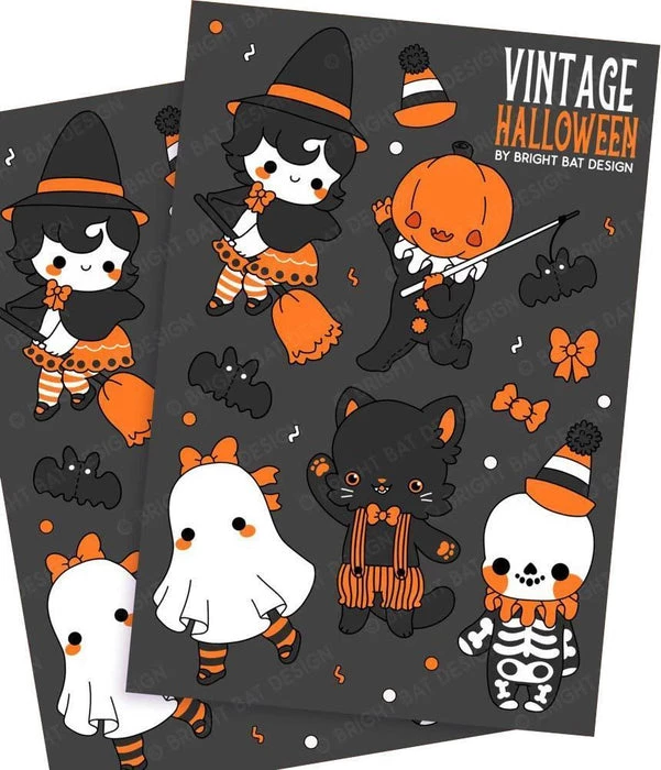 A pack of 2 Vintage Halloween sticker sheets to make any surface extra cute- and spooky!