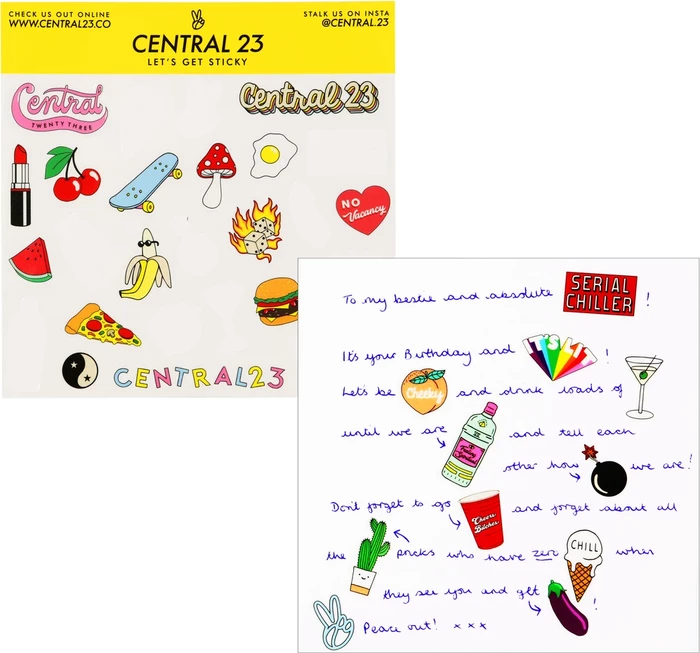COMES WITH FUN STICKERS โ to help you create a witty and cheeky message with an extra dose of Central 23 fun!