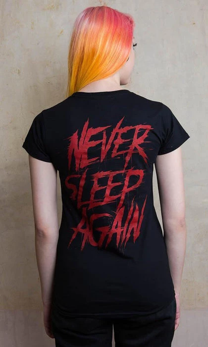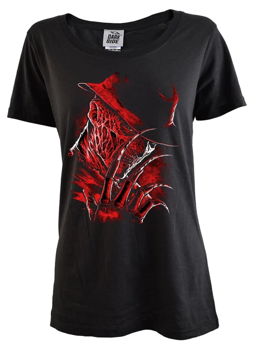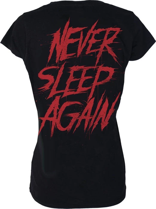 Never sleep again with this awesome tribute to A Nightmare on Elm Street. This fine knit cotton t-shirtΒ features a large super soft feel front print of Freddy Krueger which is sure to keep you awake at night!