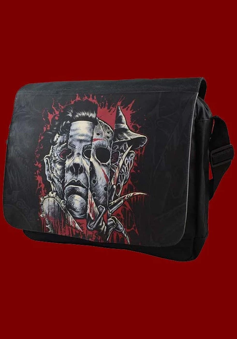This Faces of Horror messenger bag is perfect for the spooky season or any time of year and features an adjustable strap and front zip pocket!ย