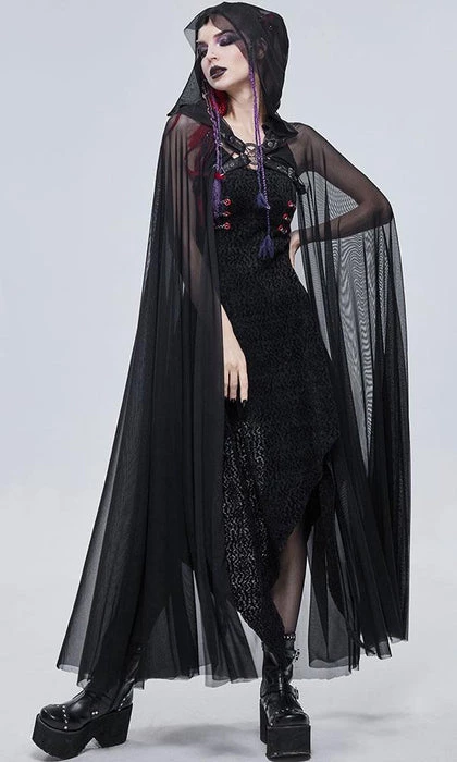 Weave through the night and blend into the darkness, shrouded in mystery and despair. Pair with a black fitted dress and boots for the ultimate goth look.
