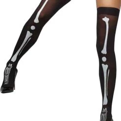 Show a little leg…bone with these black opaque skeleton thigh highs by Fever.