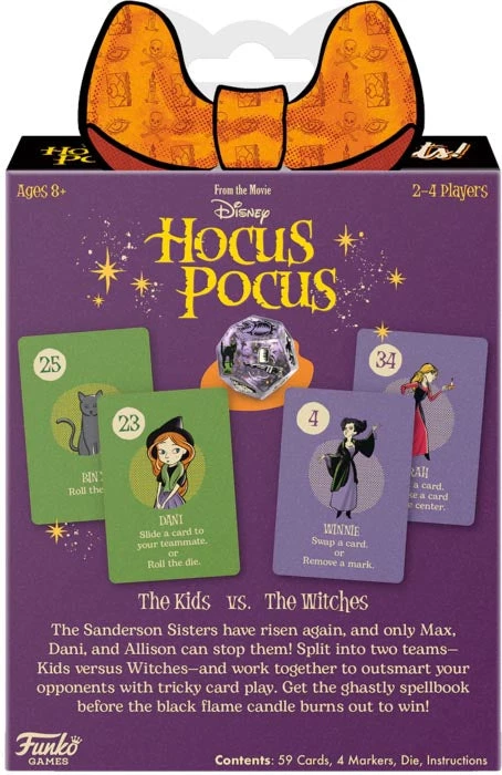 Split into two teams;Β Kids versus Witches,Β and work together to outsmart your opponents with clever card play.