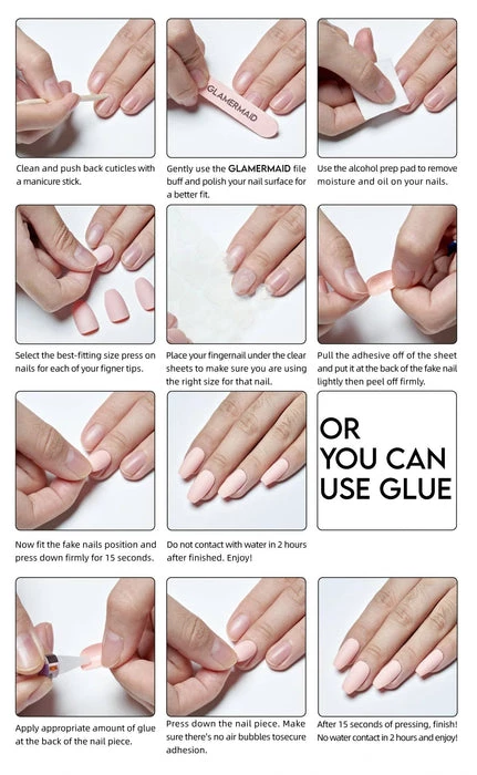 Step 4:ย Fit the nail piece and press for 15 seconds (Do not contact with water in 2 hours after finishing).