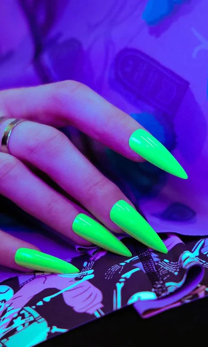 Run for your life! Opaque neon green with a twist.. it glows in the dark (under UV / black light).Β