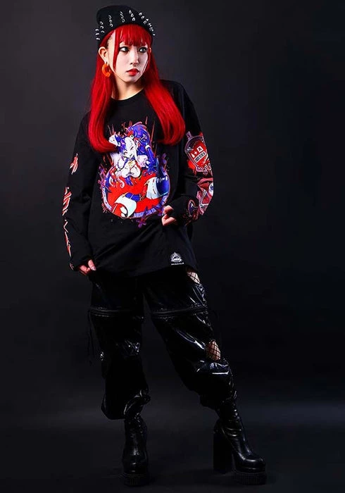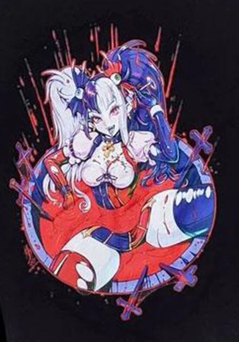 The T-Shirt features a full colour print on the front and sleeves, plus sewn-in thumb holes in the cuffs. These even have Custom Draculita tags!