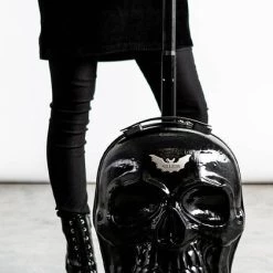 Bring a bit of magic on your adventures out the crypt. The ‘Tomb’ travel suitcase will sure cause a stir on your trips to Transylvania. Hard protective case in a custom skull mold, collapsible handle and four wheels so you can be on a constant roll. All black like your soul! With zip closure, multi compartments and just the right size for your carry-on.