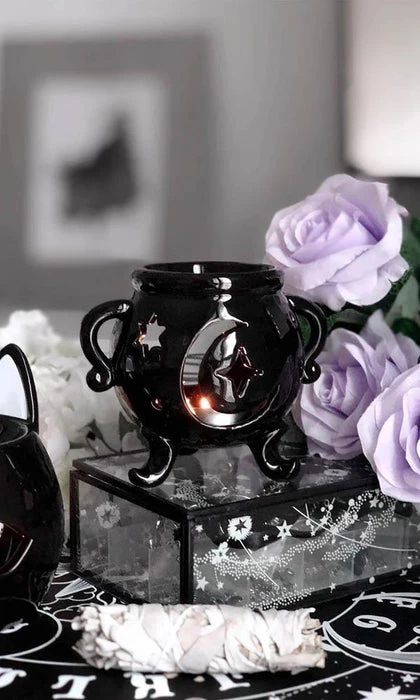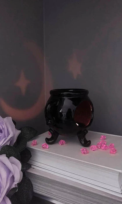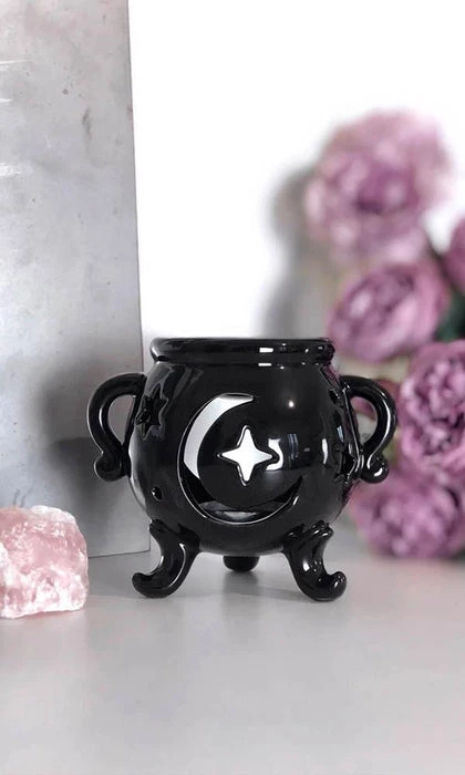 Add the finishing touches to your crypt, altar or office with this cute Β΄Cauldron’ oil burner. In black with cut-outs, just use your favourite burning oil.