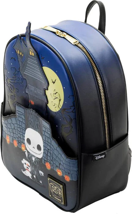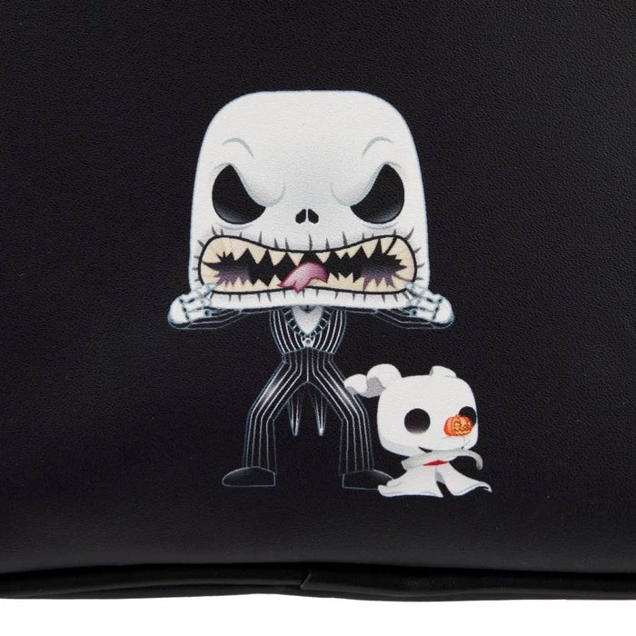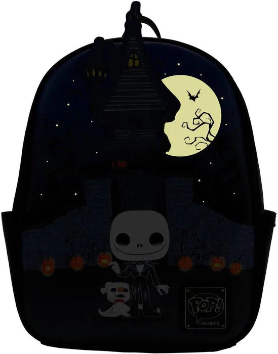 Prepare for a scare! Funko Pop! by Loungefly Jack Skellington Mini BackpackΒ brings some frightful fun to every day. On the front, Jack Skellington and ZeroΒ the ghost dogΒ fromΒ The Nightmare Before ChristmasΒ appear in Funko Pop! form outside the gates of Jackβs house. Opening the gate will grant you access to a hidden pocket perfect for storing your tricks and treats. Turn the bag around to find Pop! Jack Skellington and Zero striking a terrifying pose. Embrace your spooky side with a festive accessory that is sure to bring thrills and chills throughout the year.