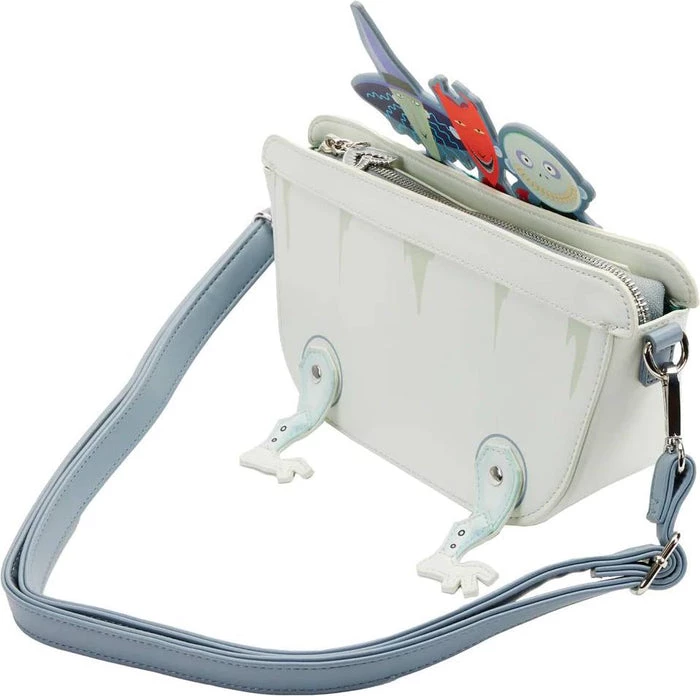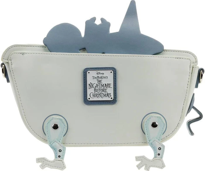 Oogie Boogie has sent his finest trick-or-treaters to carry out his dastardly plans. Stay on his good side, or he may send his mischievous henchmen after you! The Loungefly Nightmare Before Christmas Lock, Shock, and Barrel Bathtub Crossbody Bag features Oogie’s trio of underlings as they take a ride in a mechanical bathtub. Wearing costume masks that glow in the dark, Shock, Lock, and Barrel move up and down as the tub carries them away. An enamel bear trap zipper charm dangles over the side, providing easy access to all your tricks. The feet of the tub move back and forth to really set trouble in motion! This creepy crawly accessory adds some frightful fun to any outfit and will keep your belongings safe on any journey.