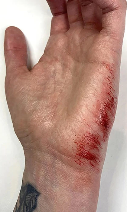 May be applied to any open wound effects (created from Latex, Modeling Putty/Wax or 3-D Gel). Use with a stipple sponge for instant road rash/scrape effects. Formula is safe for use in and around the mouth. Product may stain, pretesting is recommended. Remove with soap and water.