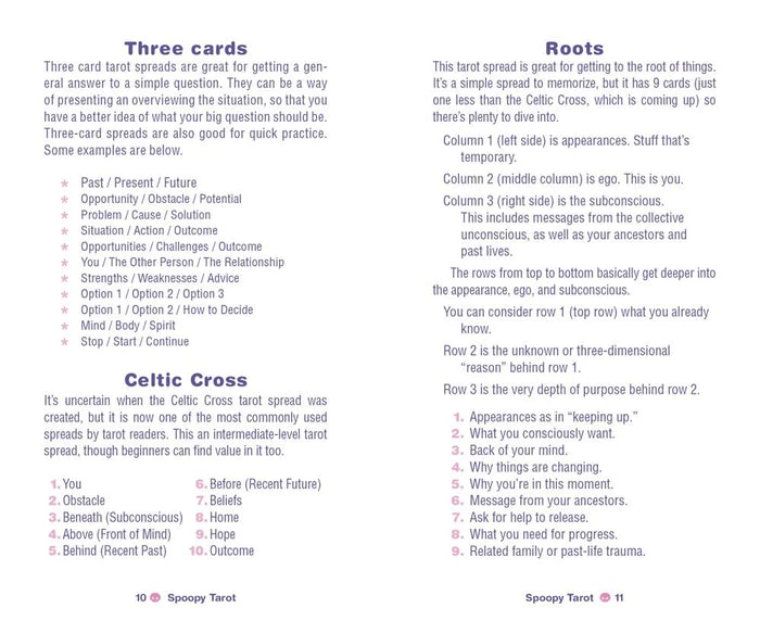 Spoopy TarotΒ is a kawaii treat for all the spooky season tricksters, featuring the classic tarot deck reimagined with cute li’l ghosts, nasty witches, and other fun stuff that goes bump in the night. Instead of the fool’s journey,Β Spoopy TarotΒ follows a spirit floating through a haunted house, encountering 78 extremely cute versions of traditional tarot archetypes in the major and minor arcana.