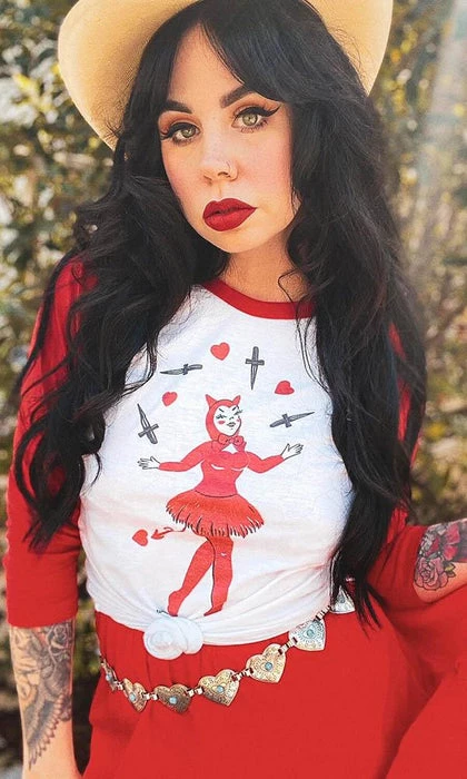 Conjure some vintage style in this beautiful raglan tee. It’s lightweight, soft White and Red colour features a spooky design and looks incredible paired with a pencil skirt or capris!