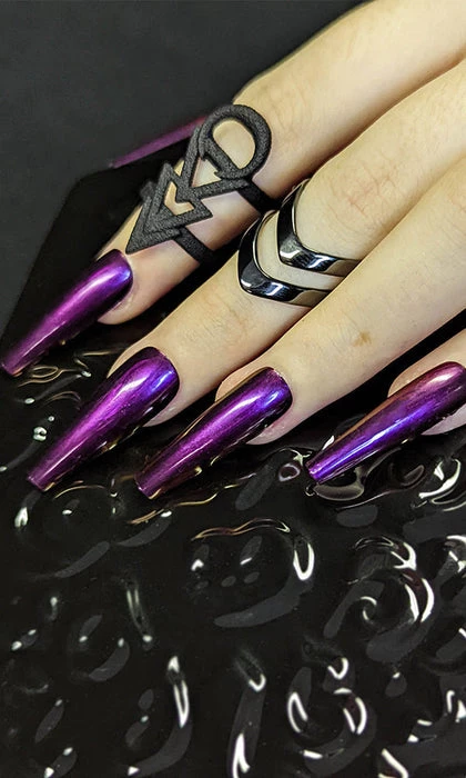 Raise the dead to appreciate this deadly dark purple shimmer shade on your claws! Necromancy will be your new favourite because who doesn’t love a villainous dark purple and some wicked spell casting? Necromancy looks incredible painted all over or used with a nail art tool to create sparkly statement features.ย