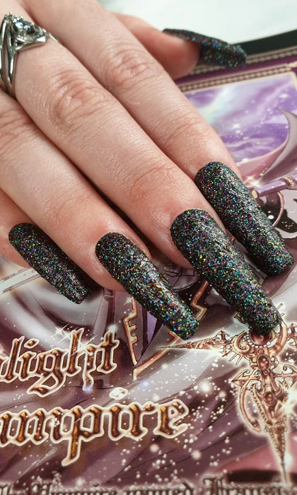 Say goodnight to all of your enemies as they will kill for a manicure like yours!ย Yoru, a Black rainbow glitter shade let’s you experience the best of both worlds, the darkest black and some glittery rainbow sparkles!ย Pro Tip – To achieve a full coverage glitter layer, apply using the sponge technique!