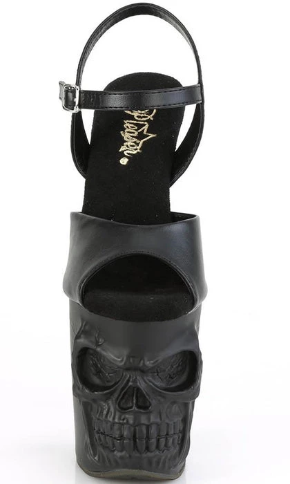 Matte Black Skull Ankle StrapΒ Platform Heels