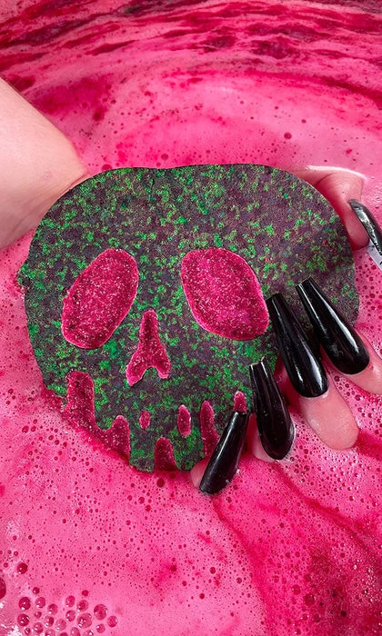 ThisΒ Poison Apple Bath Bomb is adorably spooky!Β It features aΒ ghoulish design with a flair for the dramatic when added to water and smells devilishly delicious!