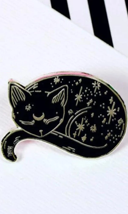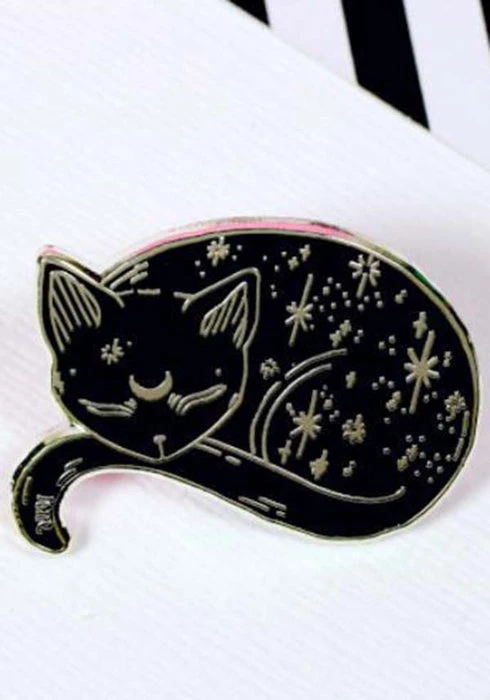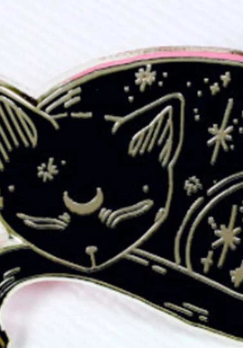 Hard enamel gold mystical cat pin.
