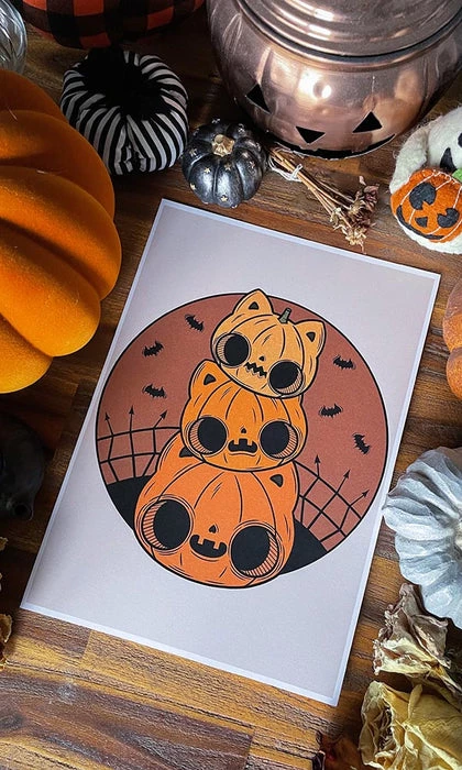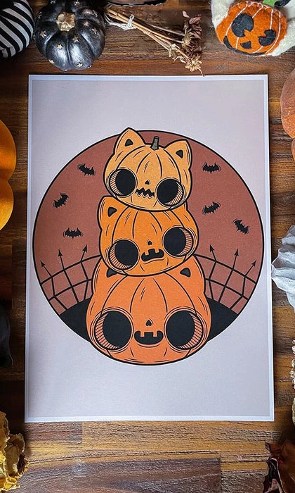 Cat-O-Lantern Stack Art Print.