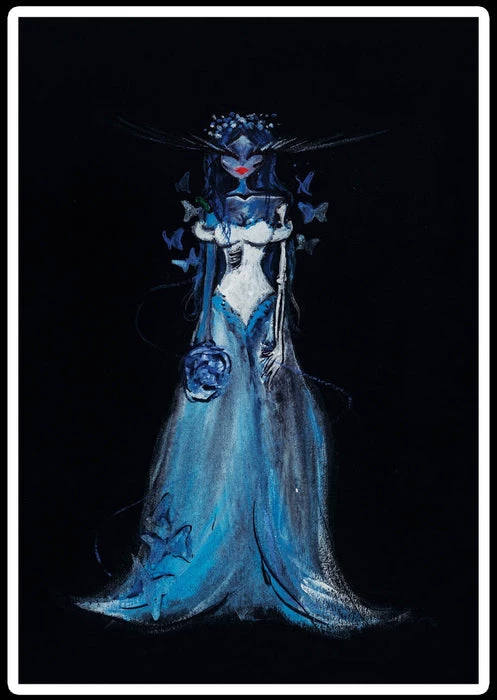 Original gouache painting inspired by Tim Burtonโs infamous character Emily from the spooky film Corpse Bride.