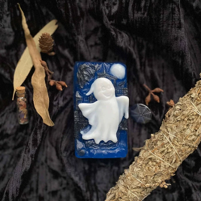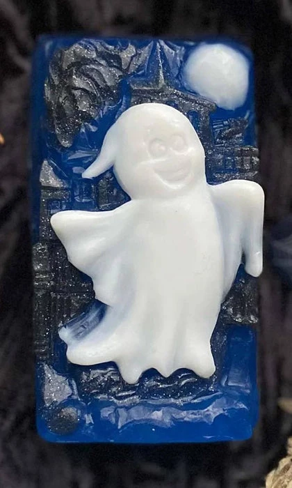 This happy little ghost wishes you a boo-tiful Halloween.Β Keeping the same cult-classic scent from the Halloween Ghost soap from years past. That fresh and cooling scent of ectoplasm that’s so welcome during our hot spring and summer seasons. β