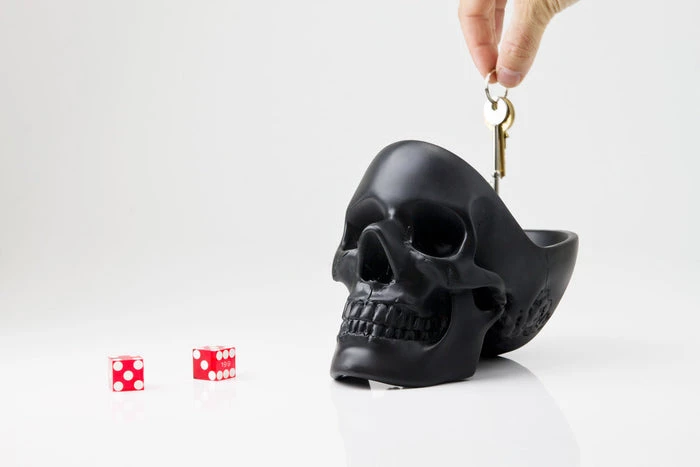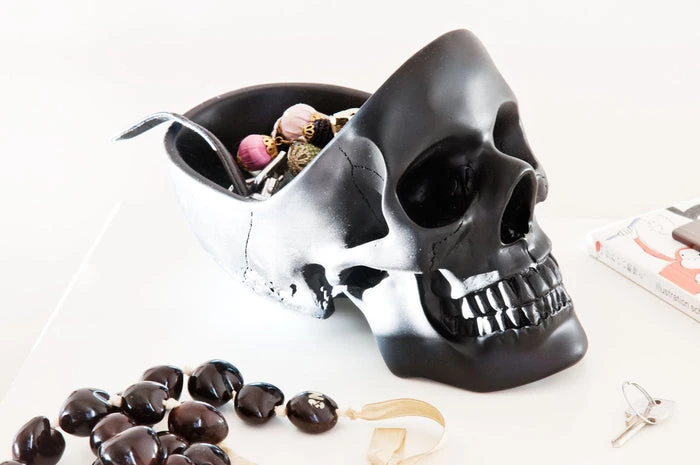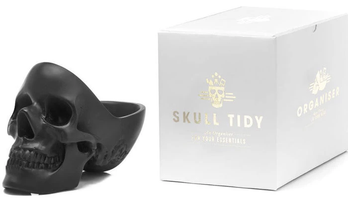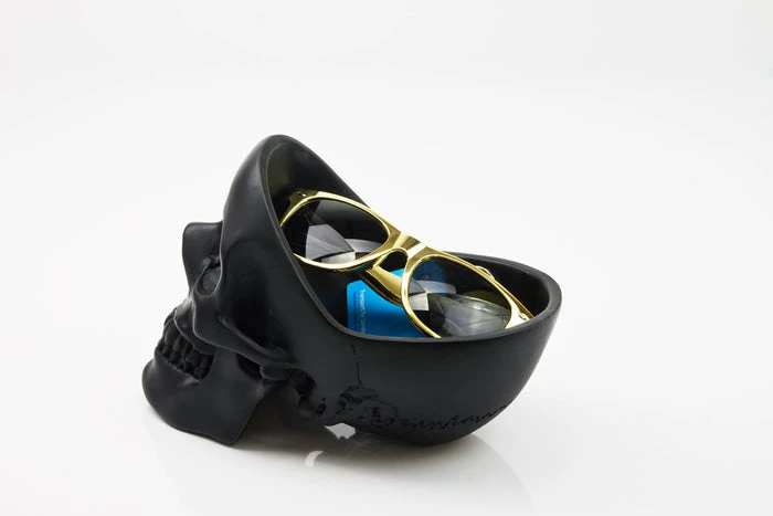 This skull is an awesome addition to any entryway, mantelpiece or alter! With plenty of room to store your keys, glasses, phone, watch, loose change, and the contents of your pockets… as we all know it can be difficult keeping all these things in mind. Get organised, keep your paraphernalia in a skull, freeing up space in yours. The key to good organisation is to keep everything in one place, so stay tidy, fill your head with stuff before you lose it. Very sturdy and quite heavy!